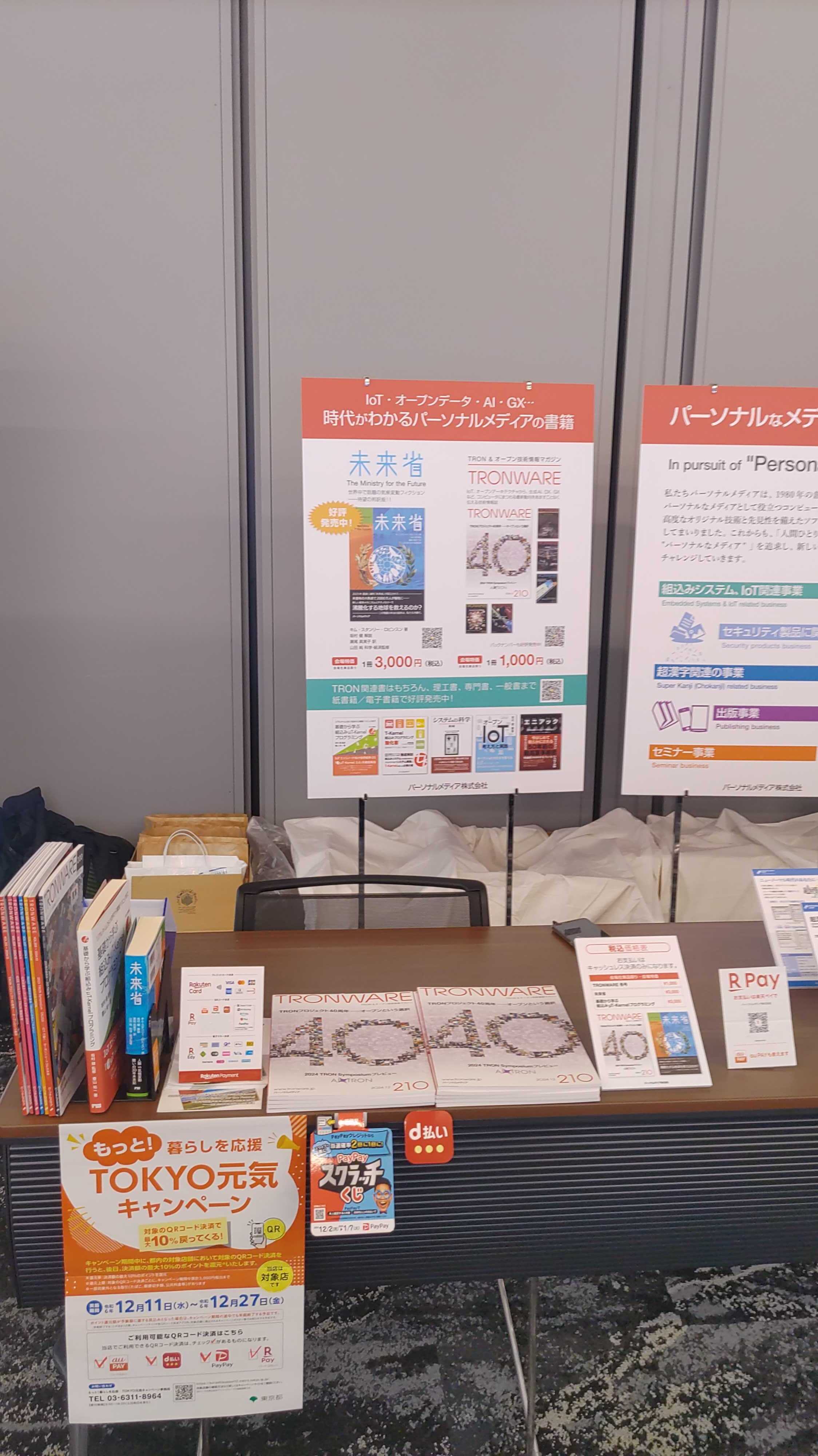 パーソナルメディア株式会社は、2024年12月11日(水)~13日(金)まで渋谷パルコDGビル 18F カンファレンスホール「Dragon Gate」で開催された「2024 TRON Symposium(TRONSHOW) ~AI X TRON~」に出展しました。