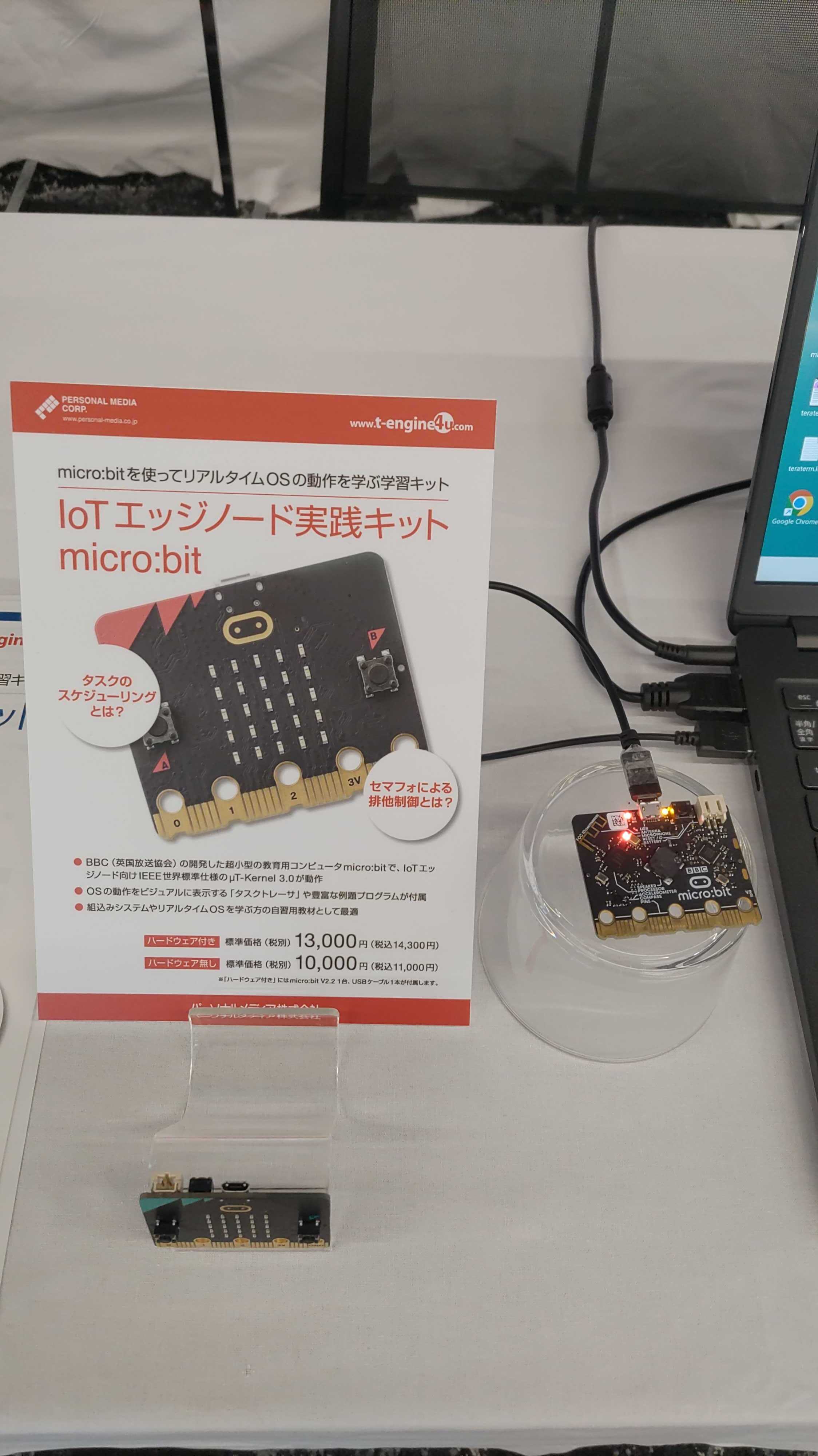 当社ブース(ブースNO: A-4)では、TRONの技術をAIでサポートするチャットボット「PMC TRON AI Assistant」の最新版、マルチコア対応の最新版組込み向けリアルタイムOS「PMC T-Kernel 3.0」、μT-Kernel 3.0とmicro:bitを使ったリアルタイムOSの学習教材「IoTエッジノード実践キット/micro:bit」、昨年に発売25周年を迎えたパソコン用BTRON「超漢字」など、当社のTRON関連ソリューションを紹介しました。