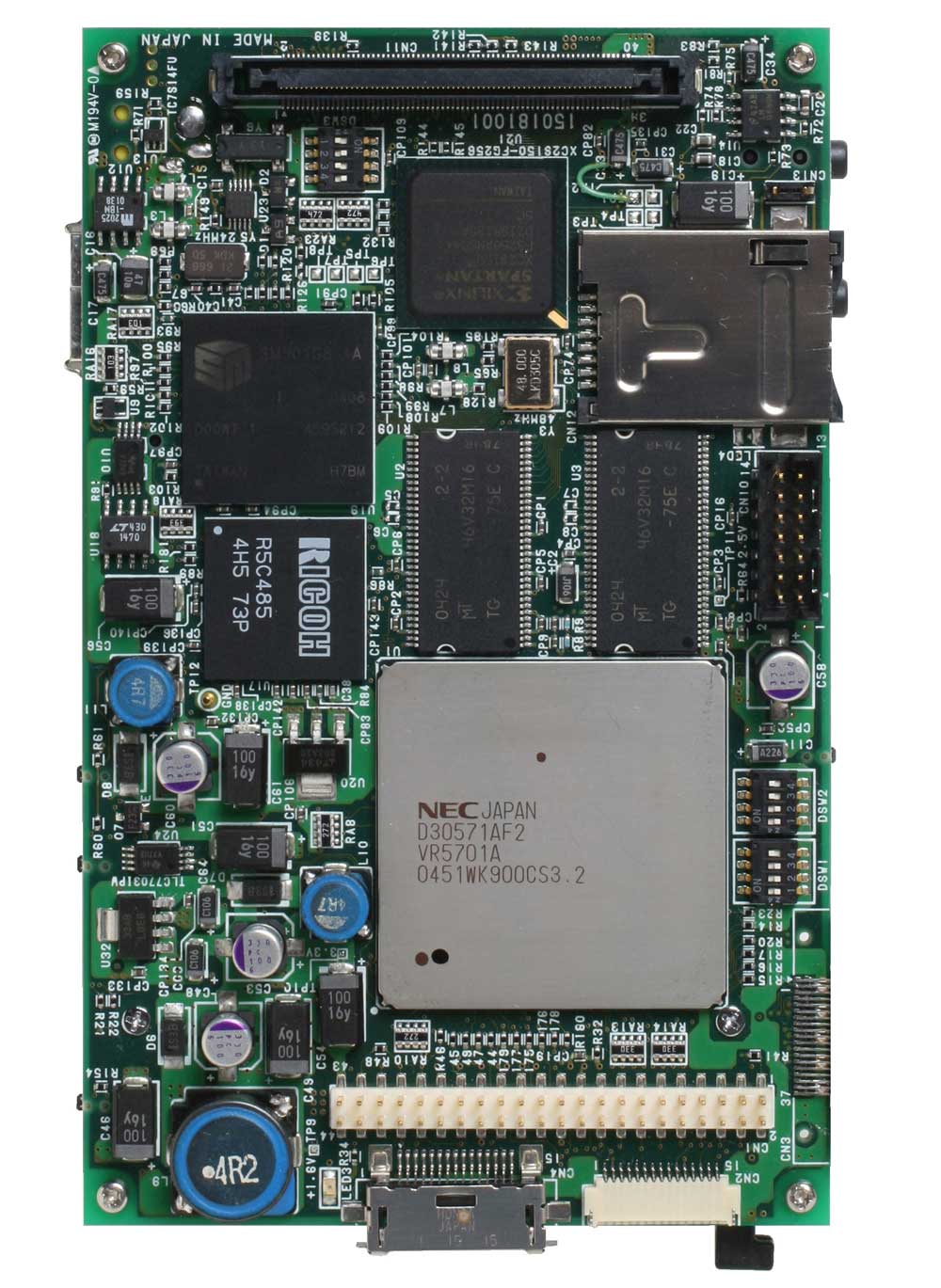 - 待機時約2.5W、CPU動作時約4Wと低消費電力設計の、MIPSアーキテクチャをベースにしたNECエレクトロニクス製64ビットCPU「VR5701」を搭載した標準T-Engineボード